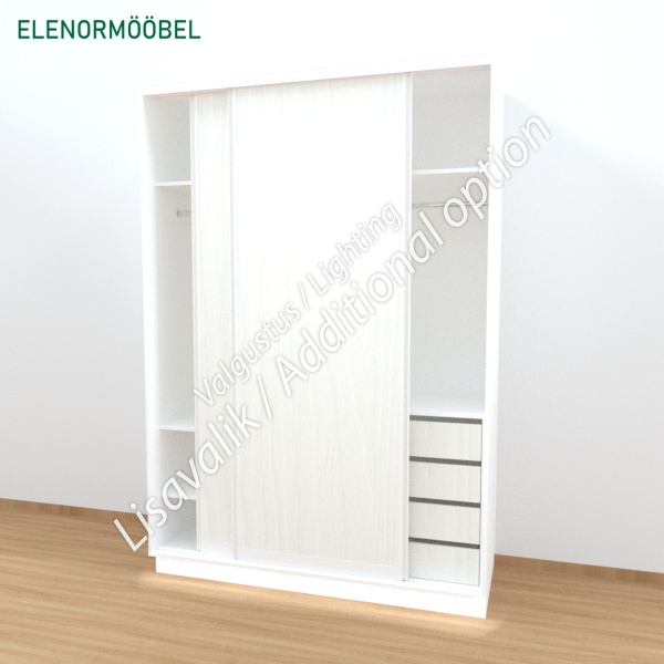 Materjal Saksa tootja Egger mööbliplaat. Fassaad Egger W1000ST19 mööbliplaat. Karkass Egger W960 mööbliplaat. Usteraamid valget värvi.