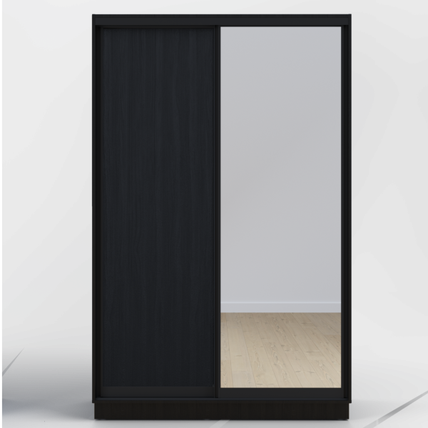 • Riidekapp Garderoob Kahe Liuguksega Must Struktuurne Peegliga Uksega