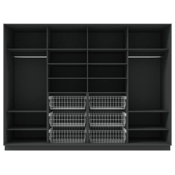 Garderoob Nelja Lükanduksega Must Struktuurne Kuue Pesukorviga