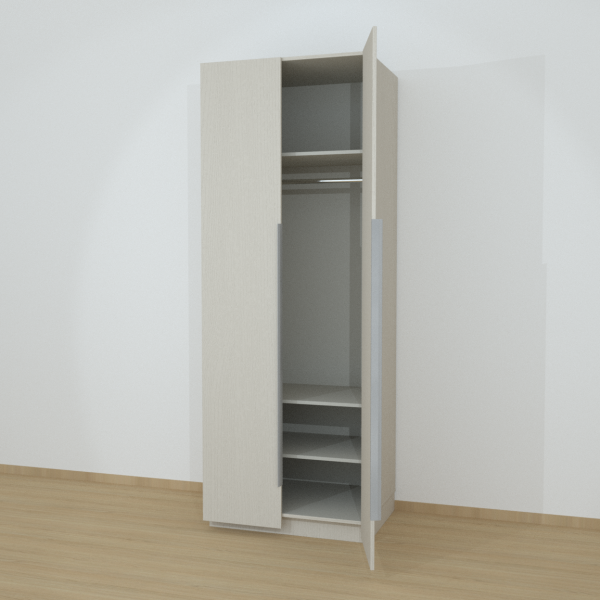Garderoob  valmistatakse Saksa tootja Egger mööbliplaadist. Fassaad ja esipaneelid Egger U702 mööbliplaat. Tagasein, vahesinad ja riiulid Egger U763 mööbliplaat.