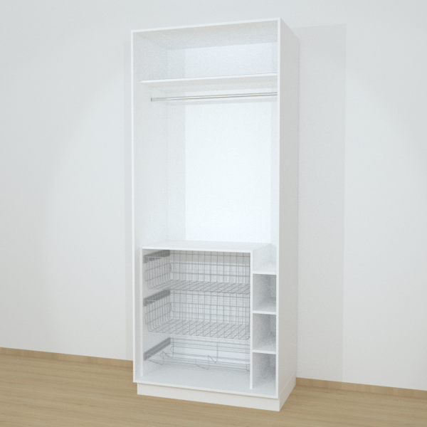 Riidekapp Garderoob Avatud Kahe Pesukorviga Ühe Jalatsikorviga Valge