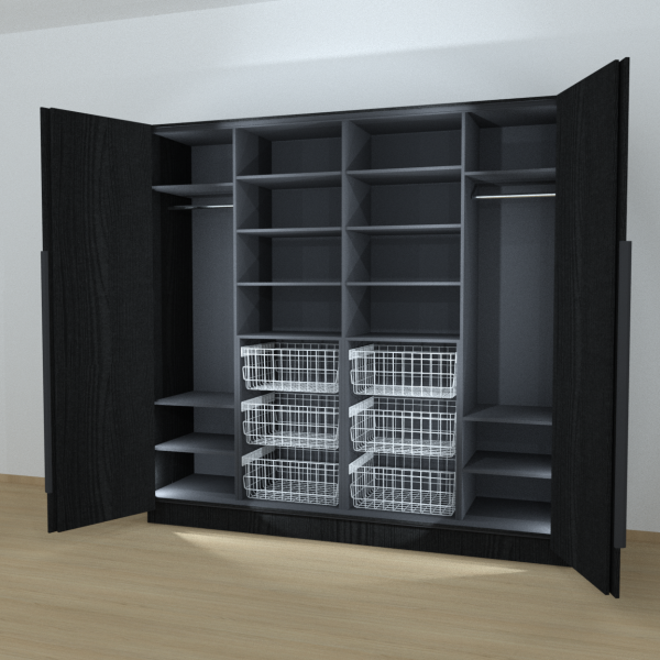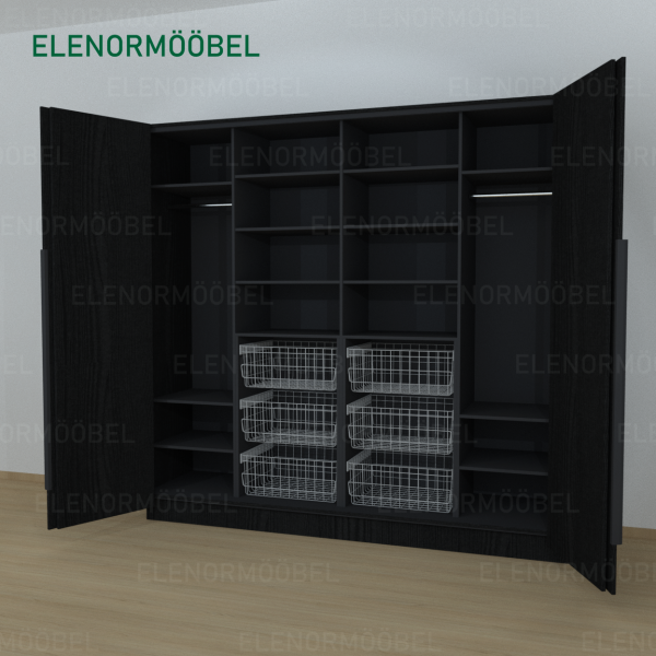Riidekapp Garderoob Kahe Voldikuksega Kuue Pesukorviga Must Struktuurne
